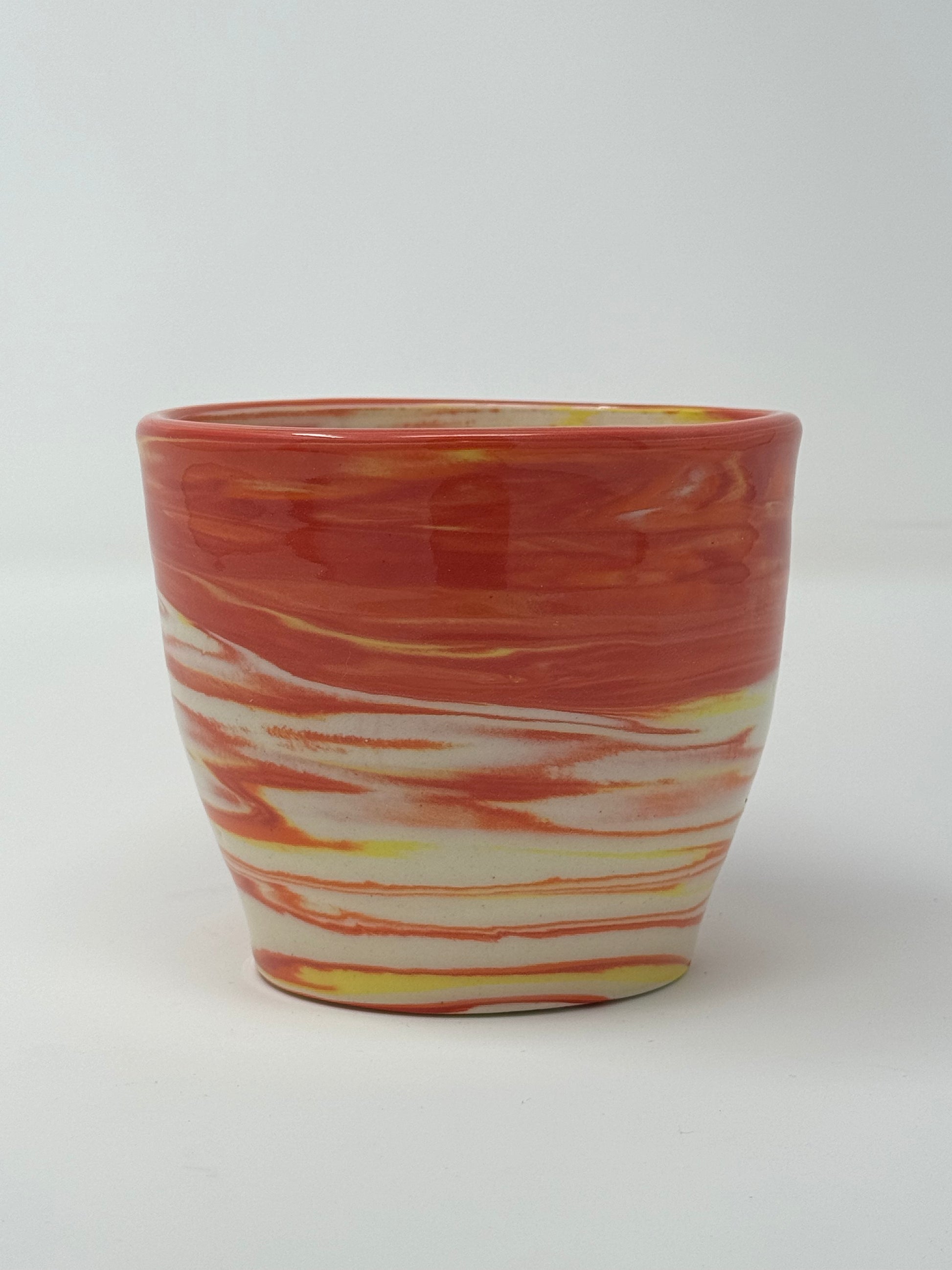 Wheel thrown bowl with four different colors of marbled stoneware.